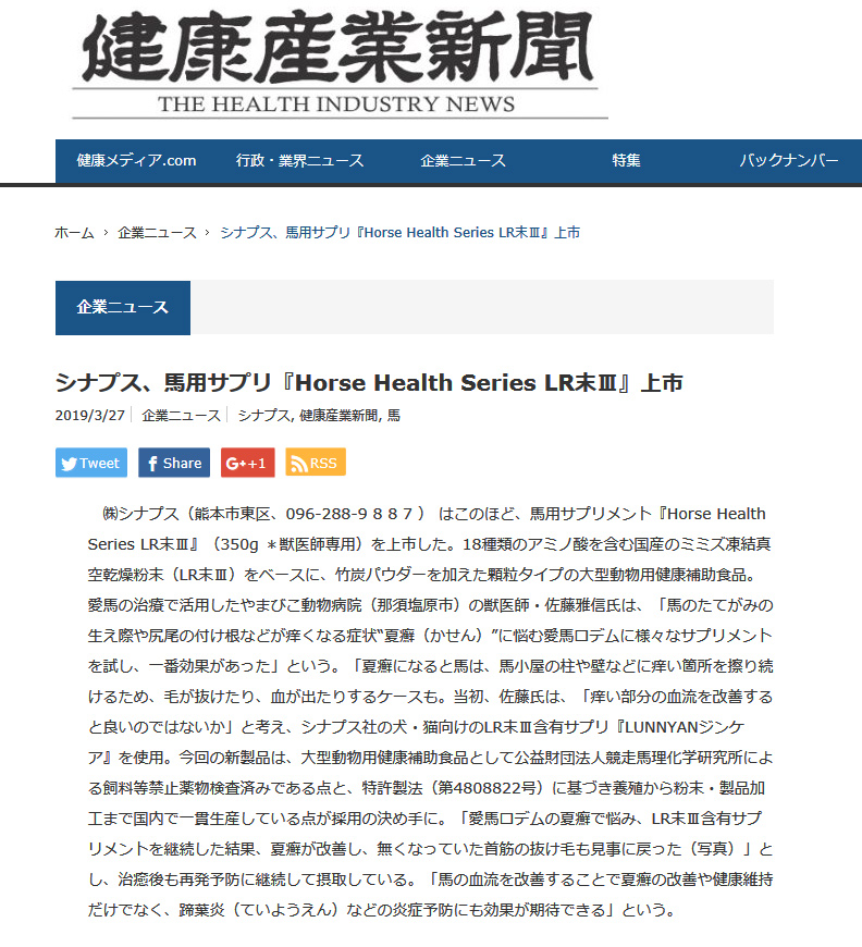 (2019.3月)健康産業新聞に掲載されました。
